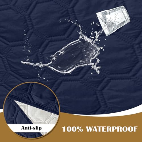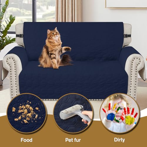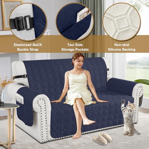 100% Waterproof Sofa Covers for Pets, Non Slip Sofa Slipcovers Couch Cover for Living Room Washable Pet Couch Cover with Elastic Straps Furniture Protector (Navy Blue,2 Seater)