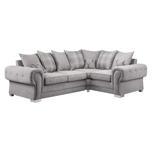 2 C 1 Corner Sofa – Verona Scatter Back Sofa – Grey Fabric Upholstered Couch – Comfy 4 Seater Couch Corner Seater for Living Room Lounge Indoors Decor (Right Hand)