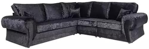 - ?Luxurious Crushed Velvet: This corner sofa is adorned with lavish crushed velvet upholstery, providing a soft and welcoming texture.