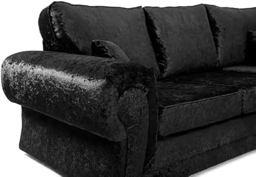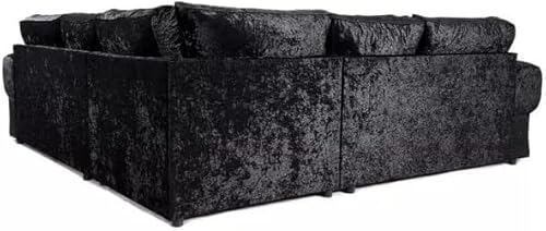 2 C 2 Crushed Velvet sofa – Dual Arm Corner Seater – Tango Corner Sofa L Shape Settee – Comfy High Back Couches Sofas Seater for Living Room Lounge Indoors Decor (Black)