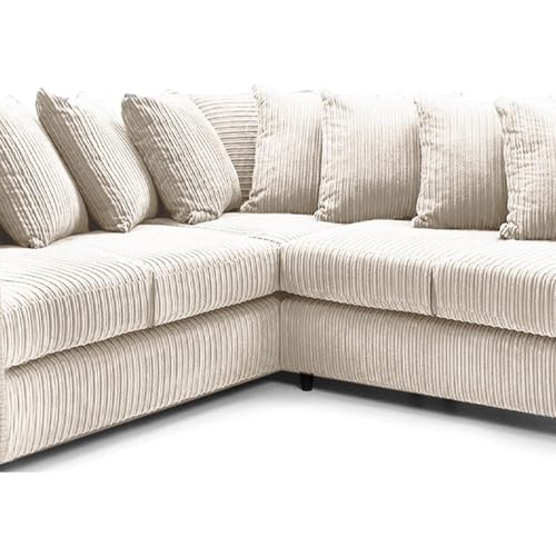 2c2 Corner Sofas – Cream Liverpool Jumbo Cord Corner Sofa – 5 Seater Couch with Scatter Back Cushions – Modern Suite with Optional Footstool and Swivel/Arm Chair for Living Room (Corner)