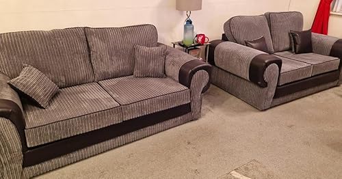 3 Plus 2 Seater Sofa Set – 2 seater Jumbo Cord Sofa – Selection High Back Cushion Sofa Suite – Dual Arm Corner Sofa for Living Room Lounge Indoors (Brown, 3 Seater)
