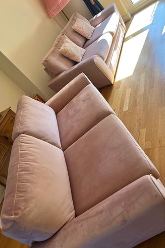3+2 Settee Sofa Sets – Dylan 2 Seater Sofa – Comfy 3 Seater Suite – Plush Velvet Corner Sofa Set – Dual Arm Scatter Back High Back Sofa for Living Room Lounge (Pink, 2 Seater High Back)