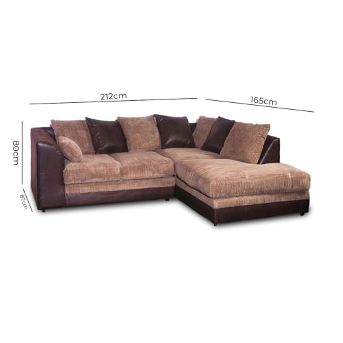 4 Seater Sofa – Jumbo Cord Corner Couch – Comfy Leather & Fabric Settee – Sectional Right Hand Sofas – L Shape Scatter Back Suite Seaters For Living Room Lounge Indoors