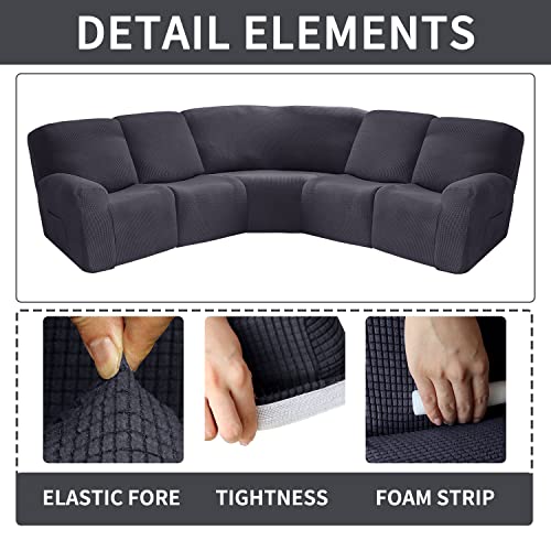 7-Piece L Shape Sectional Recliner Sofa Covers 4 Seater & 1 Corner Seat,Stretch Jacquard Reclining Couch Cover Slipcover for Reclining L Shape 5 Seat Recliner Corner Sofa(Dark Grey,Jacquard)
