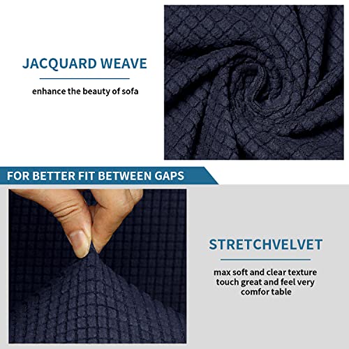 7-Piece L Shape Sectional Recliner Sofa Covers 4 Seater & 1 Corner Seat,Stretch Jacquard Reclining Couch Cover Slipcover for Reclining L Shape 5 Seat Recliner Corner Sofa(Navy Blue,Jacquard)