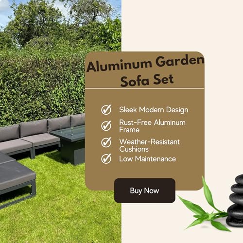 - Spacious Seating: 8-seater garden sofa set, perfect for outdoor lounging and entertaining. Durable Build: Made from high-quality aluminum, ensuring strength and longevity in outdoor environments.