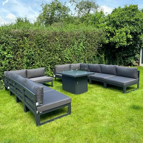 8 Seater Aluminum Garden Sofa Set With Firepit- Dark Grey | Stylish & Durable Outdoor Furniture | Modern Garden Furniture