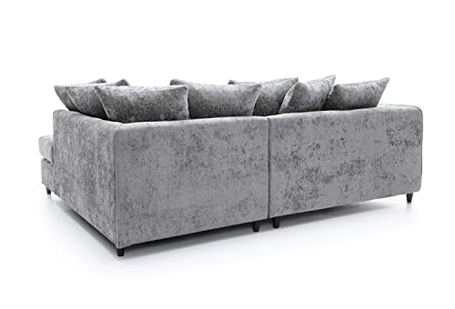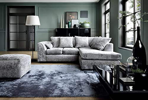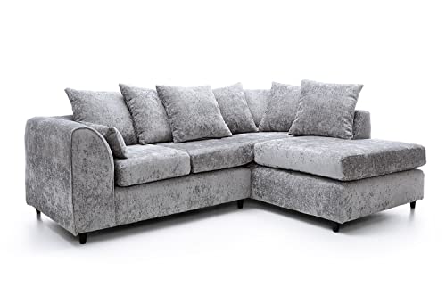 Abakus Direct Harriet Corner Sofa – Light Grey Crushed Chenille – L Shaped Couch Unit for Living Room – Range Includes 2 Seater, 3 Seater, U-Shaped Sofa & Footstool Options – Corner Right
