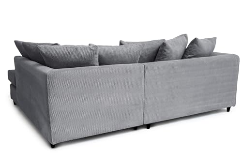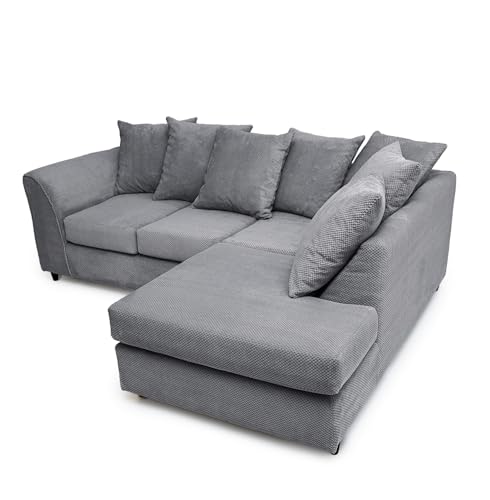 Abakus Direct | Jumbo Grid Corner Sofa – Modern Corner Sofa with Grid‑Textured Fabric, Angular Arms and Scatter Cushions – Available in Grey, Beige or Green (Grey, Right Hand Facing)