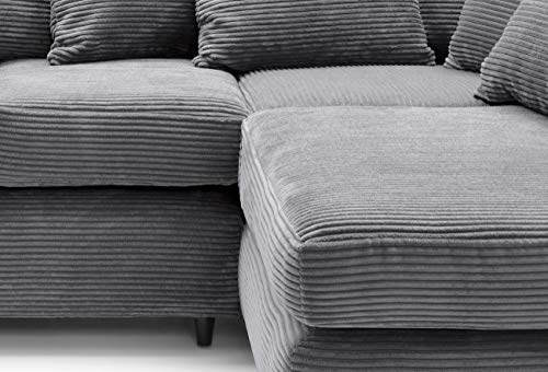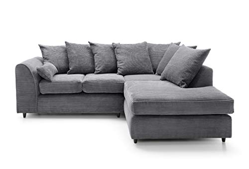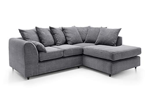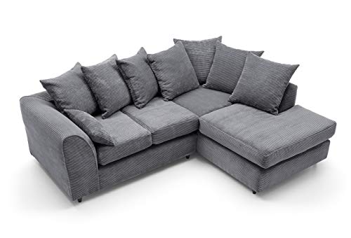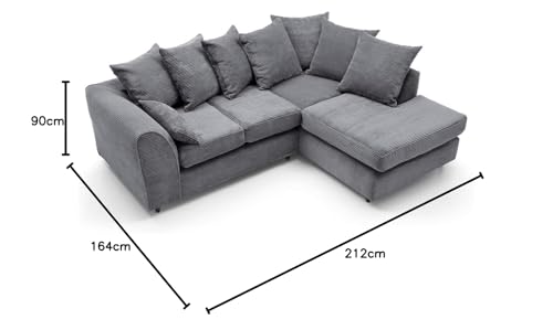 Abakus Direct Right Hand Corner Sofa – Jumbo Cord L Shaped Sofas for Living Room with Thick Luxury Deep Filled Cushioning | Contemporary Chaise Lounge Sofa in Elegant Grey | 212Wx164Dx78H