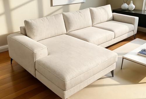 Abakus Direct | Venice Corner Sofa – Modern L-Shaped Sofa with Basket Weave Fabric, Scatter Back Cushions, Left or Right Hand Facing – Available in 9 Colours (Cream, Left Hand Facing)