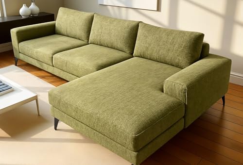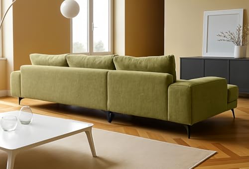 Abakus Direct | Venice Corner Sofa – Modern L-Shaped Sofa with Basket Weave Fabric, Scatter Back Cushions, Left or Right Hand Facing – Available in 9 Colours (Olive Green, Right Hand)