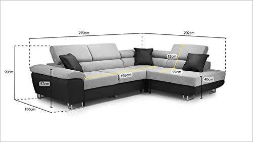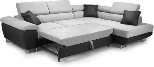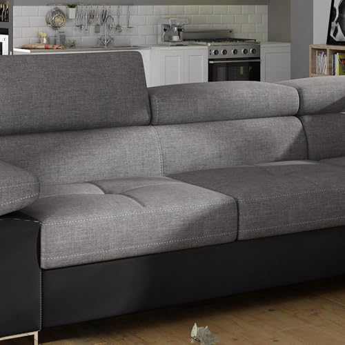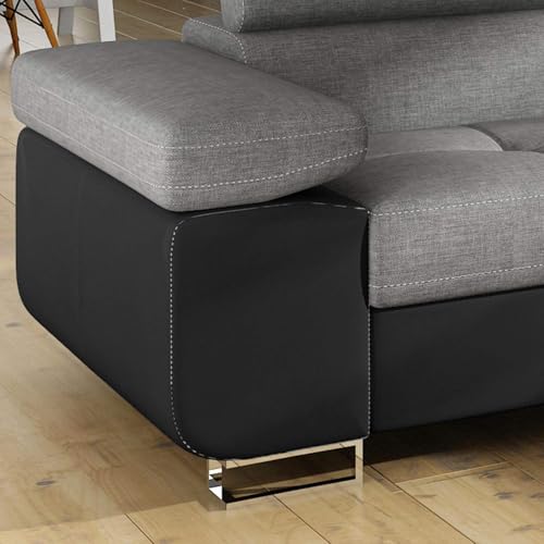 Anton – Sofa – Storage – Sofa Bed – Black/grey – Faux leather/fabric (Black/Grey, Left hand corner and Right hand corner) (Right Hand Corner)