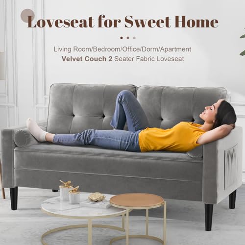 - ?Easy Assembly?The installation process is simple, taking just a few steps and taking less than 20 minutes, and this fabric velvet couch is ready to give you a comfortable and reliable experience. All parts and installation instructions for the 2 seater sofa come in a box. Please read the instructions carefully and check that all parts are complete before installation;