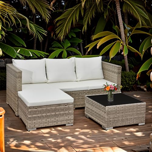- Versatile Outdoor Set: This 3-piece rattan garden furniture set includes a sofa, ottoman, and coffee table for a complete patio lounging experience. It can be easily combined into different configurations according to different home decoration styles and space sizes