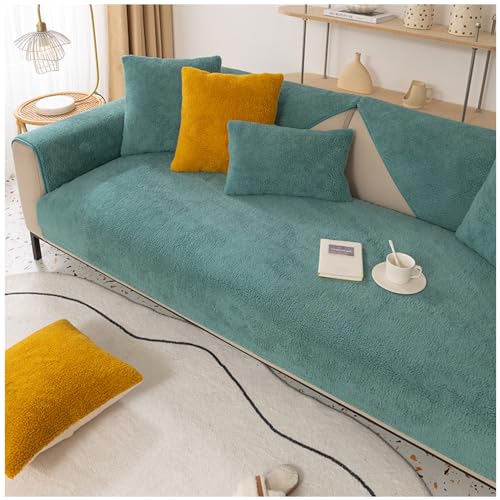 Axroad Mall Super Soft Sofa Slipcover Corner 1/2/3/4 Seater Cover, Universal Non Slip L Shape Couch Cushion Cover Warm Sherpa Fabric Furniture Protector Sofa Cover for Living Room (Green, 70 * 180cm)
