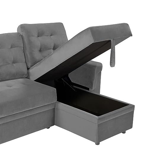 AZRBOPO Corner Sofa Bed, L-Shaped Corner Sofa Bed with Storage, Padded Sectional Transformable Sofa, Stylish and Functional Couch Sectional Settee Sleep Reversible Storage Chaise – Velvet Gray