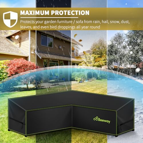 - MAXIMUM PROTECTION – The Beeway garden furniture cover is designed for ultimate protection! Made of top-quality 420D Oxford fabric with a UV-stabilized and Waterproof PU coating, it shields your furniture from rain, hail, snow, dust, leaves, and even bird droppings. The cover is completely waterproof, thanks to its durable double-stitched seams and fully taped seals using special hot melt sealing tapes.