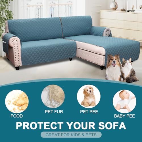 BellaHills Sofa Cover L Shape 2 Piece Couch Cover for Sectional Sofa Non Slip Corner Sofa Cover Water Resistant Chaise Sofa Cover for Dogs (Right Chaise Lounge + 2 Seater, Smoke Blue)