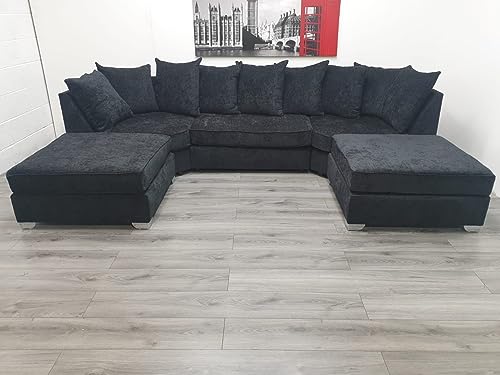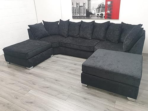 Bespoke Beds EASTON U SHAPED SOFA SOFT VELVET FABRIC CORNER SOFA (Black)