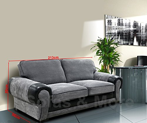 Big Corner Sofa Suite 3+2 Armchair Jumbo Cord Black And Grey (3 Seater)