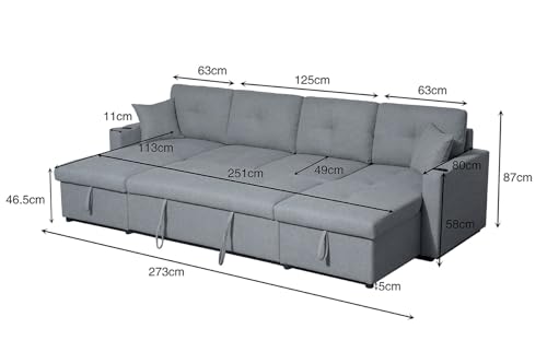 - Dimensions of Sofa Bed : Hight:87cm Lenght:273cm Width:80cm Sofa Bed:L:251cm D:113 H:46.5