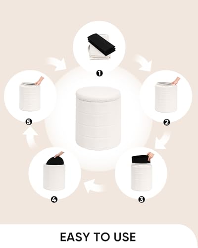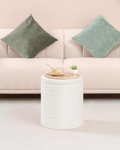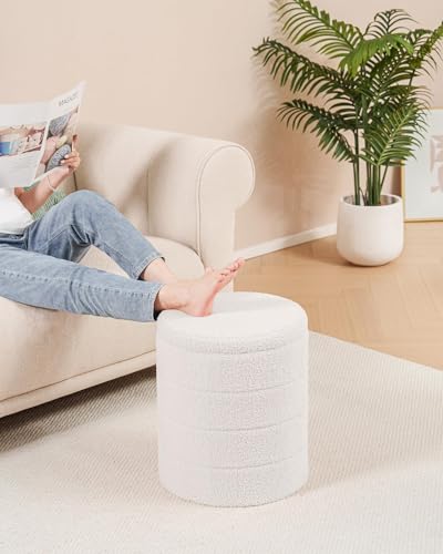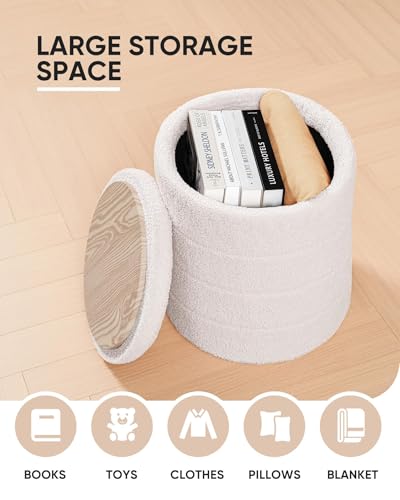Bonlife Boucle Ottoman Storage, Foot Rest Stool Seat, Folding Footstool for Living Room, Sherpa Ottoman for Bedroom, White, 37x37x45 cm