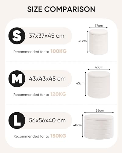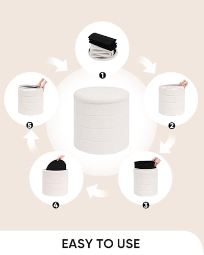 Bonlife Boucle Ottoman Storage, Foot Rest Stool Seat, Folding Footstool for Living Room, Sherpa Ottoman for Bedroom, White, 43x43x45 cm