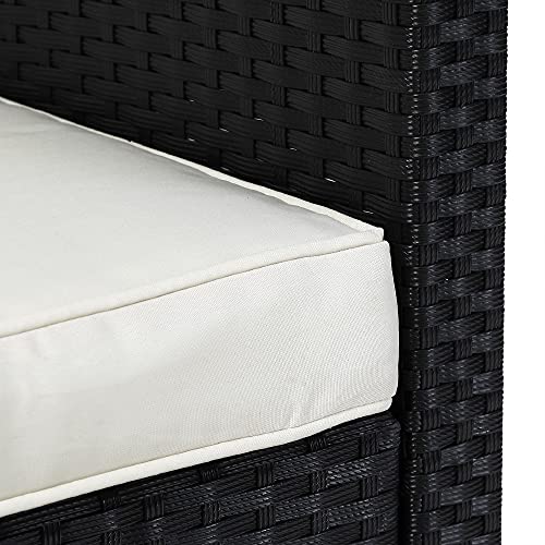 - COMFORTABLE: The 15cm thick back cushions and 7cm seat cushions of the garden furniture ensure a particularly high and comfortable seating comfort. Relax and lean back on your new seating thanks to the side armrests and pleasantly high backrests.