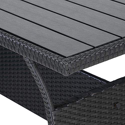 - WPC TABLE TOP: The durable and extremely weather-resistant WPC, made of a wood fiber and plastic mixture, impresses with its natural wood look. In addition, the table legs can be adjusted to individual height differences using integrated compensation screws.