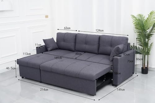 Classic L-Shaped 3 Seater Pull out Fabric Corner Sofa Bed with Storage And Cupholder, Convertible Sofa Bed Settee Sectional Sofa for Living Room (Black)