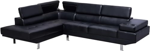 - The Classic Bonded Leather Left & Right Hand Side corner sofas Adjustable Headrests with cup holders is a stylish and comfortable seating option for any living space.