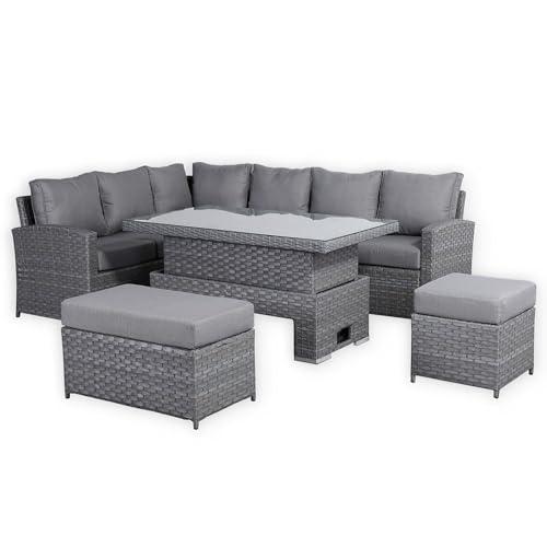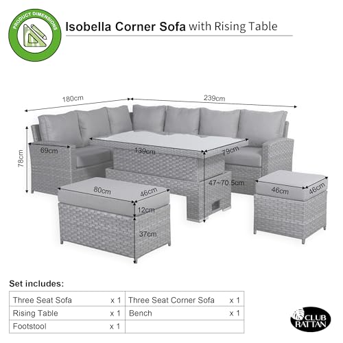 Club Rattan Garden Rattan furniture Isobella High Back Corner Sofa with Rising Table, L Shaped Sofa For Patio,Wicker Patio Conversation Set (Slate Grey, Left hand corner)