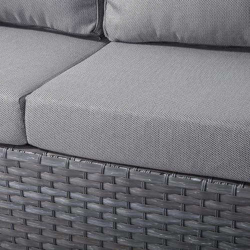 - The garden furniture set is made with solid powder-coated steel frame hand weave PE Rattan that weather-resistant and withstand exposure to the sun and rain without fading or warping. The 12cm thick seat cushion is unmatched by other products on the market.