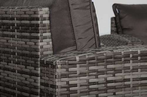 Club Rattan High Back Elite Corner Sofa Set with DiningTable and Arm Chair, 10-seater Large Rattan Garden Corner Sofa Set (Grey, LHF + Dining table)