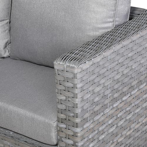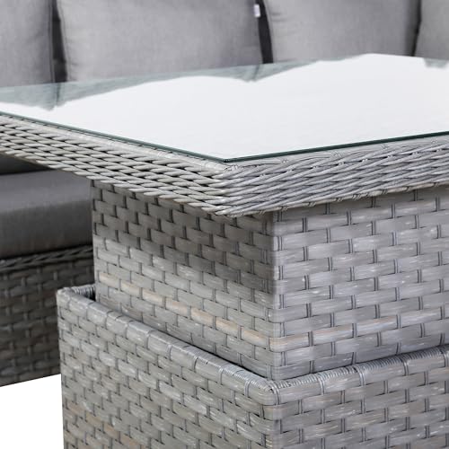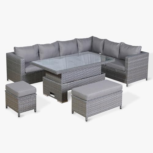 Club Rattan Isobella Range Right Hand Corner Sofa in Large Grey -9 Seater Garden Rattan Furniture Set Including an Outdoor Sofa, One Stool, One Bench,Height adjustable table, Cushions