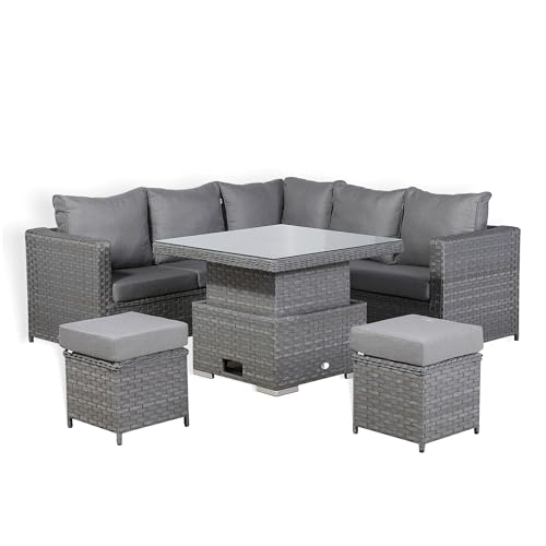 Club Rattan Square Compact Corner Sofa Set with Rising Table In Grey Weave (Grey)