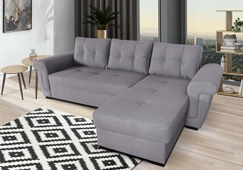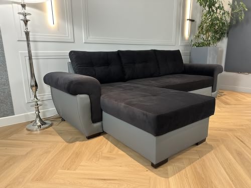 Corner Sofa bed with Storage Black Fabric Grey Leather