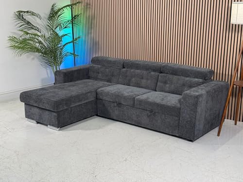 Corner Sofa Bed with Storage, Grey Fabric, Left and Right Hand Facing Chaise, Modern Living Room Furniture