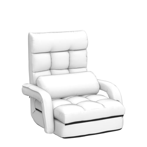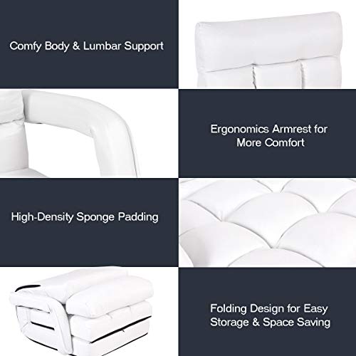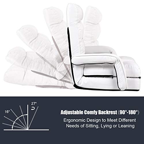 COSTWAY Adjustable Folding Lazy Sofa Bed with Armrests and Pillow, Convertible Floor Armchair Sofa Seat for Home Office, Easy-to-Clean (White)