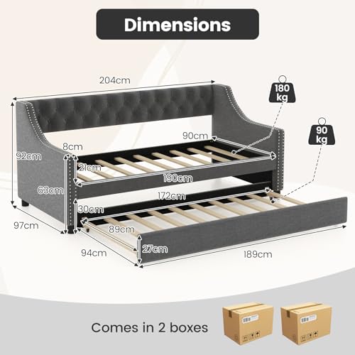 - ?Sophisticated Design?Our day bed with trundle features a stunning button-tufted backrest and exquisite nailhead trim on the armrests. Whether placed in a living room, bedroom or guest room, this single sofa bed frame adds a touch of sophistication and elegance to your living space.
