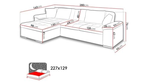 - ? CONVENIENT SLEEPER FUNCTION: Transform your sofa into a comfortable bed in seconds. With a generous sleeping area of 227 x 129 cm, it offers plenty of space for guests or cozy movie nights. Perfect for unexpected overnight stays.
