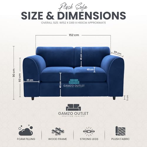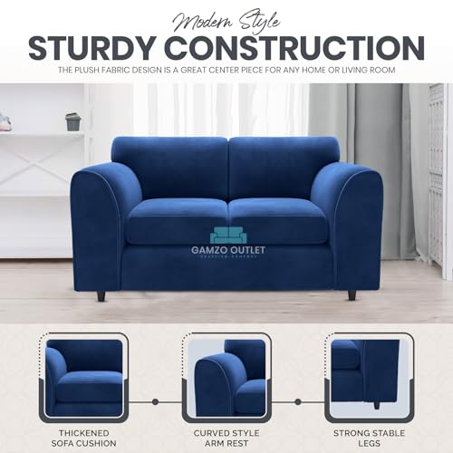 Gamzo Outlet Fashionable Imperial 2-Seater Full Back Plush Fabric Sofa Luxurious Comfort Furniture for Compact & Modern Living Room (Blue, 2 Seater Sofa)