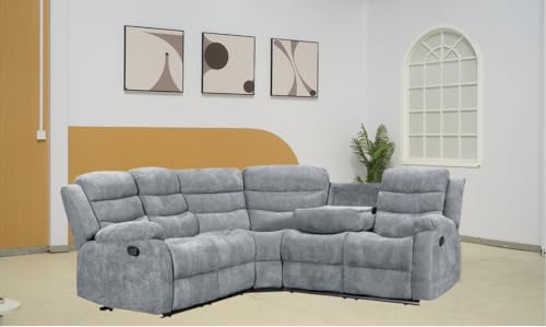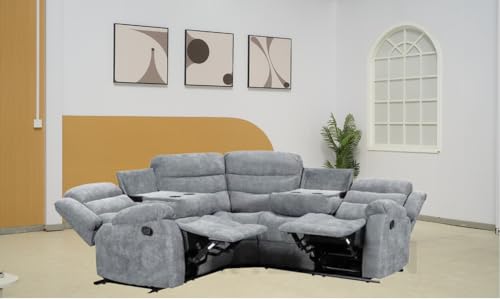 Grey Fabric Recliner Sofa For Living Room Furniture With Drop – Down Table & Cup Holders (Corner)