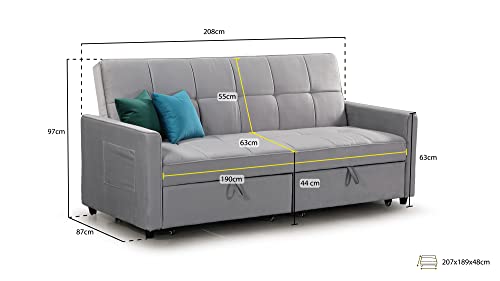 - ?DIMENSIONS?Length 208 cm – Depth 87 cm – Height 97 cm – Double Sofabed Sleeping Area 180x189x48 cm (more measurements are in the sofa dimensions image)