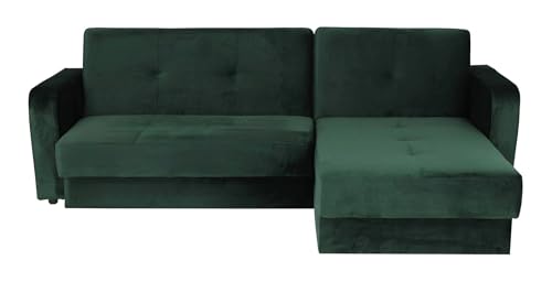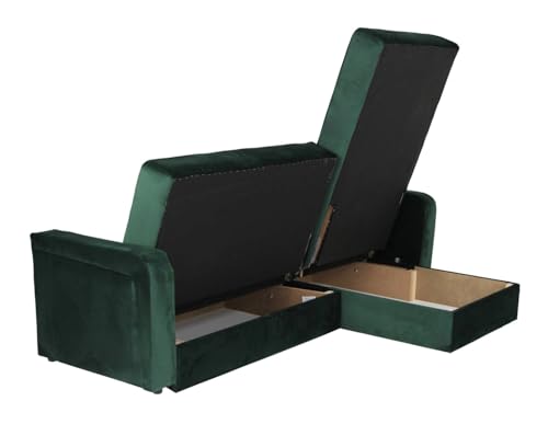 - Kieron Corner Chaise Sofa Bed + Double Storage + Large Sleeping Area Sofabed in Bottle Green Velvet (Bottle Green Velvet)