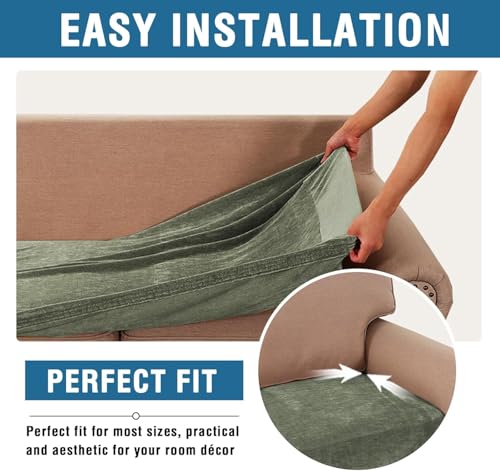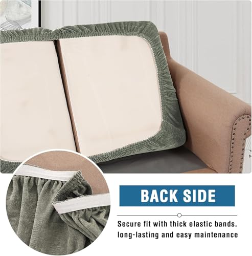 LINGKY Sofa Seat Cushion Cover, Stretch Chenille Sofa Cushion Slipcovers, Non-Slip Couch Cushion Covers Replacement for Individual Cushion with Elastic Bottom (Olive Green,1 Seater)