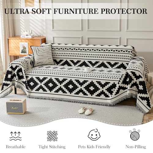 - REVWESIBLE DESIGN: the sofa blanket can be used on both sides, with one side of the blanket in white and the other in black , the LiveGo sofa cover offers a luxurious and comfortable feel, enhancing the overall look of your 3-seater corner sofa. Add an exotic, stylish look to your living room or bedroom.