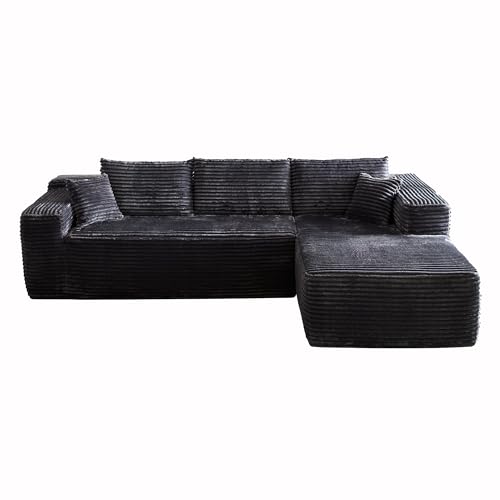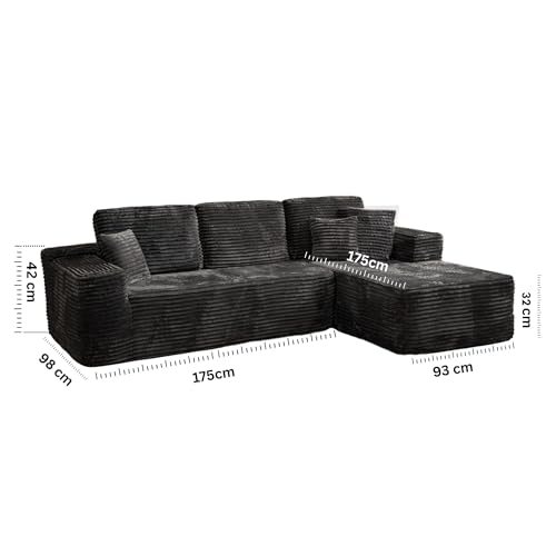 MN Furniture NO ASSEMBLY REQUIRED L-Shaped Corner Sofa | Left or Right Facing Chaise | Comfort & Lazy Seating Design with Back Cushions and Neck Rest (Black, Right Corner)